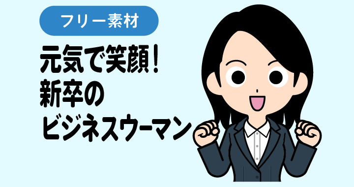 笑顔で元気!新卒のビジネスウーマン【無料イラスト】