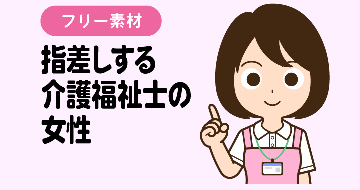 指差しする介護福祉士の女性(上半身と全身イラスト)指差しする介護福祉士の女性のイラストです。ワンポイント!