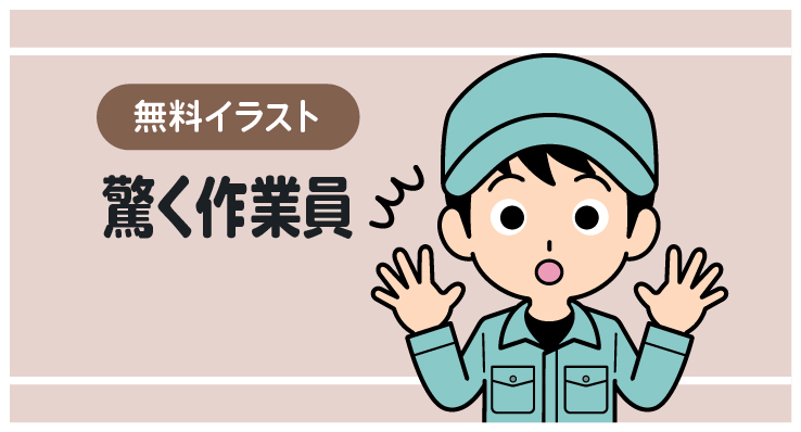 驚く作業員(上半身と全身イラスト)帽子をかぶった作業員の男性が驚いているイラストです。