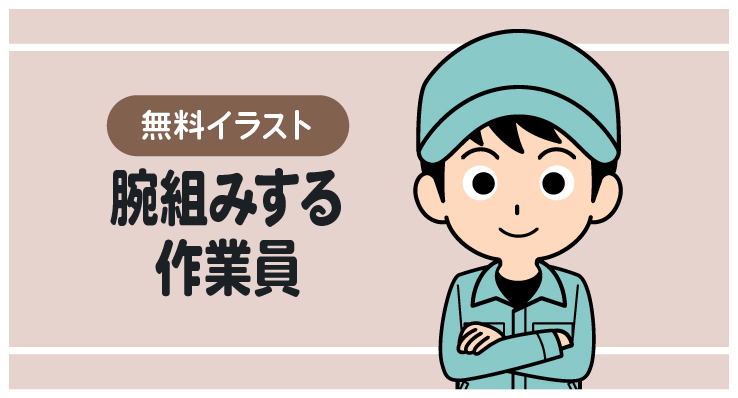 腕組みする作業員(上半身と全身イラスト)帽子をかぶった作業員が腕組みするイラストです。