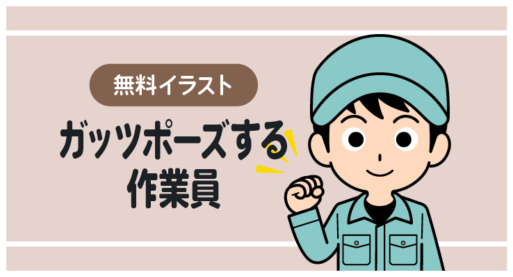 ガッツポーズする作業員の男性【無料イラスト】