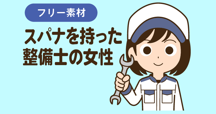 スパナを持った整備士の女性【無料イラスト】
