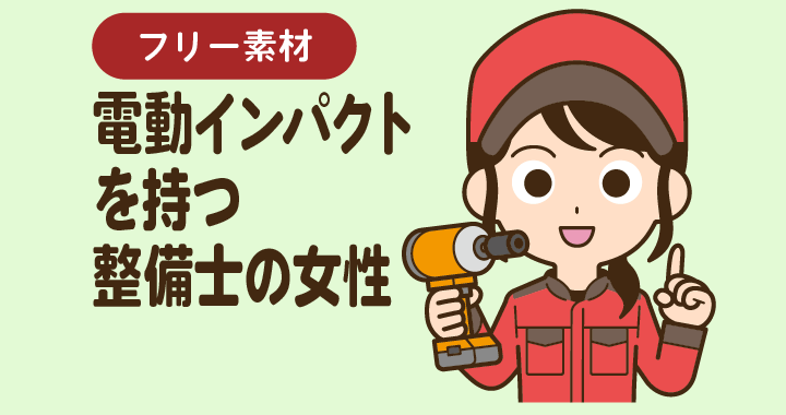 電動インパクトを持つ整備士の女性【無料イラスト】