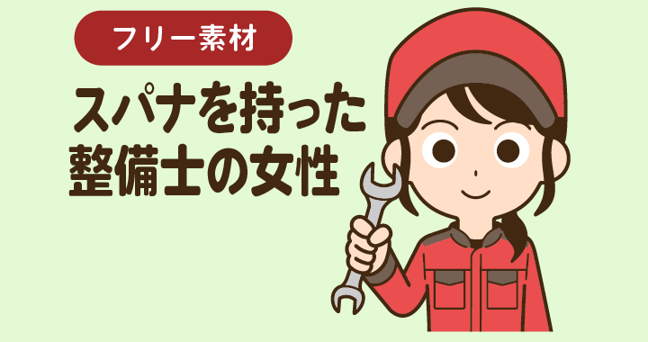 スパナを持った整備士の女性【無料イラスト】