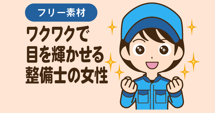 ワクワクで目を輝かせる整備士の女性【無料イラスト】