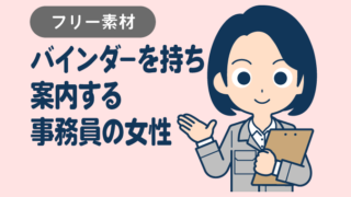 バインダーを持って案内する事務員の女性【無料イラスト】