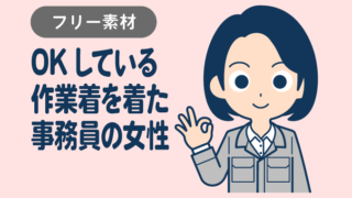 OKしている作業着を着た事務員の女性【無料イラスト】