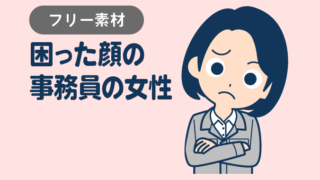 動揺して冷や汗をかく事務員の女性【無料イラスト】