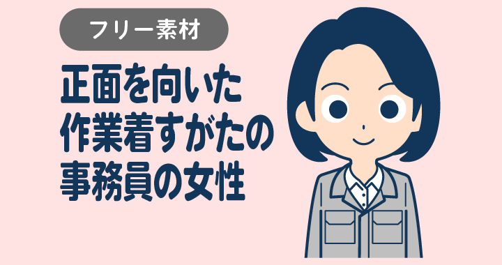 正面を向いた作業着すがたの事務員の女性【無料イラスト】