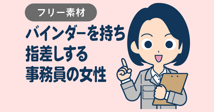 バインダーを持って指差しする事務員の女性【無料イラスト】