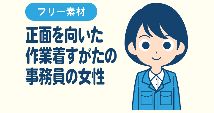 正面を向いた作業着すがたの事務員の女性【無料イラスト】