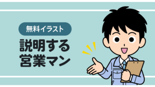 説明する営業マン(上半身と全身イラスト)バインダーを持って説明する営業マンのイラストです。