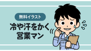 冷や汗をかく営業マン(上半身と全身イラスト)バインダーを持って冷や汗をかいている営業マンのイラストです。