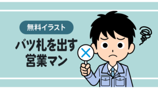 バツ札を出す営業マン(上半身と全身イラスト)バツ札を出す営業マンのイラストです。