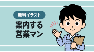 案内する営業マン(上半身と全身イラスト)バインダーを持って案内する営業マンのイラストです。