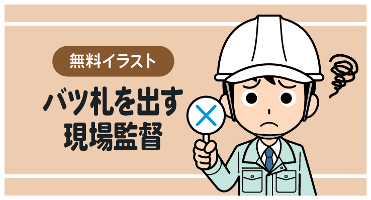 バツ札を出す現場監督(上半身と全身イラスト)バツ札を出す現場監督のイラストです。残念!不正解!!