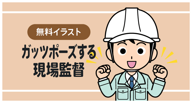 ガッツポーズする現場監督(上半身と全身イラスト)ガッツポーズする現場監督のイラストです。