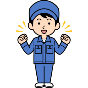 ガッツポーズするシンプルな作業員のイラストです。よしっ!!