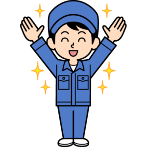 喜んでいるシンプルな作業員のイラストです。バンザーイ!!