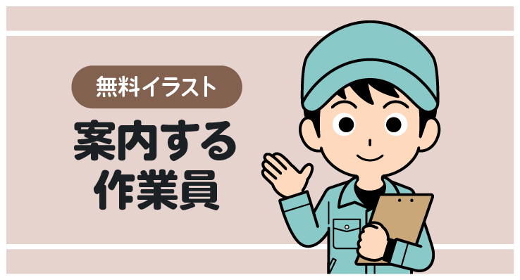 バインダーを持った作業員が案内しているイラストです。