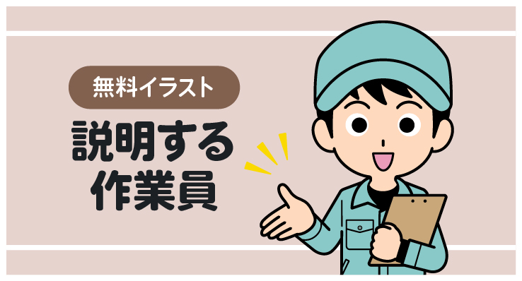 バインダーを持って説明する作業員のイラストです。