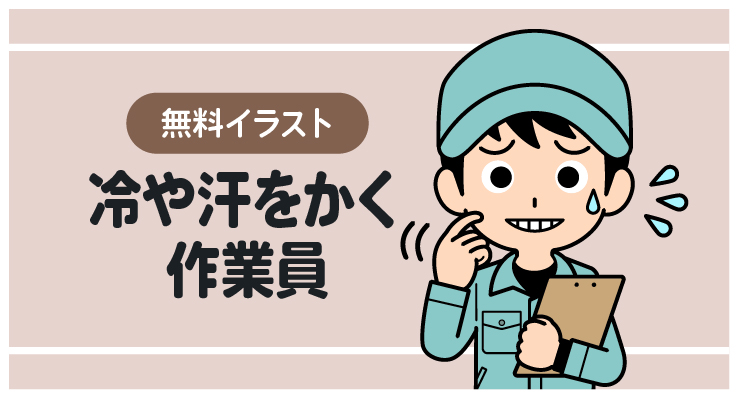 バインダーを持って冷や汗をかいている作業員のイラストです。