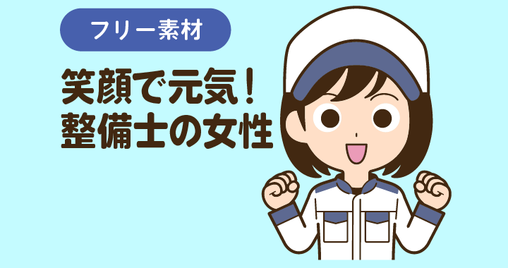 白色の帽子とツナギを着て、ガッツポーズする整備士の女性のイラストです。
