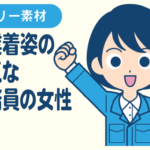 作業着姿の元気な事務員の女性B(全身&作業ズボン)