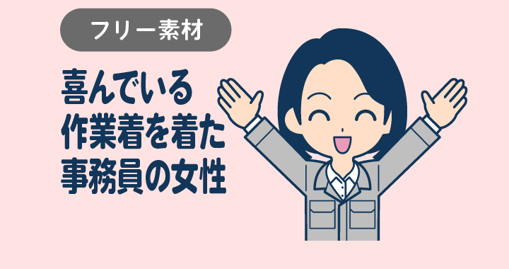 喜んでいる作業着を着た事務員の女性D(全身&作業ズボン)
