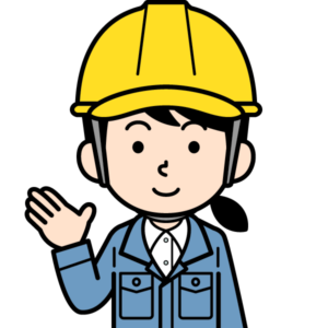指差しするシンプルな現場監督の女性のイラストです。こちらです。