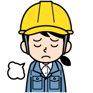 落ち込んでため息を吐くシンプルな現場監督の女性のイラストです。はぁぁ〜。。。