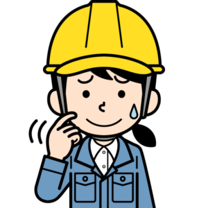 動揺して冷や汗をかくシンプルな現場監督の女性のイラストです。ポリポリ。。。