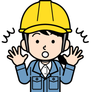 ビックリしているシンプルな現場監督の女性のイラストです。わっ!?