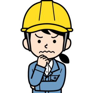 神妙な顔して悩んでいるシンプルな現場監督の女性のイラストです。むむむ、むむ。。。