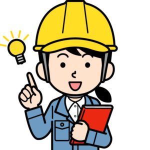 ファイルを持ってアイデアを閃くシンプルな現場監督の女性のイラストです。