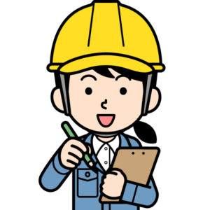 メモを書き込むシンプルな現場監督の女性のイラストです。