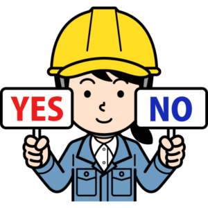 YESの札とNOの札を出すシンプルな現場監督の女性のイラストです。