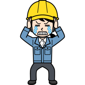 頭を抱えて涙を流すシンプルな現場監督の女性イラストです。あ”あ”ぁぁぁー!!!