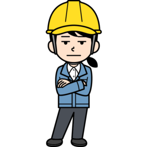 呆れて遠い目をしているシンプルな現場監督の女性イラストです。ふーん。