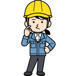 不満な表情をしているシンプルな現場監督の女性イラストです。ふーん。