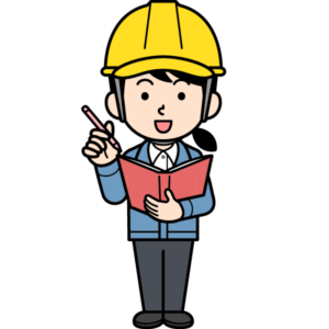 ファイルにメモを書き込むシンプルな現場監督の女性イラストです。