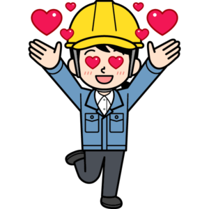 ときめきを抑えきれないシンプルな現場監督の女性の全身イラストです。❤️❤️❤️