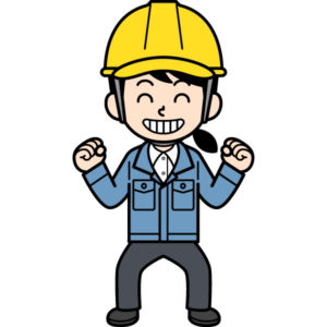 シンプルな現場監督の女性が元気満々でニコニコ笑顔のイラストです。ニシシシシ!
