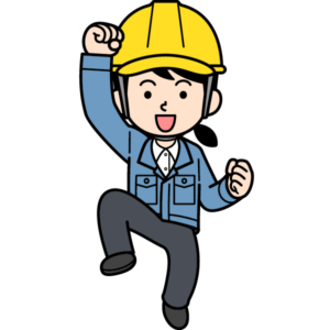 飛び上がって喜ぶシンプルな現場監督の女性のイラストです。ぃやっほう〜!