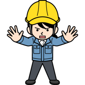 立ち塞がるシンプルな現場監督の女性のイラストです。立入禁止!!