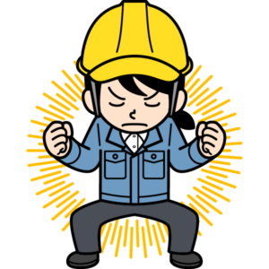 力を溜めるシンプルな現場監督の女性のイラストです。ぐぐぐぐ!!