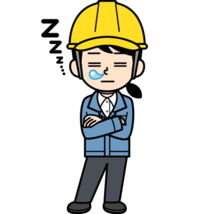 立ったまま居眠りするシンプルな現場監督の女性のイラストです。すぴーZzzz…