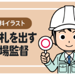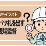バツ札を出す現場監督のイラストです。残念!不正解!!