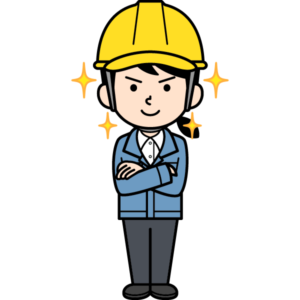 自信満々な表情をしているシンプルな現場監督の女性イラストです。ニヤリッ!