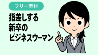 指差しするビジネスウーマン【無料イラスト】